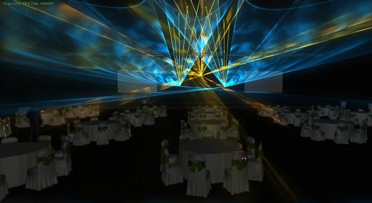 Description Beamshow with three Zones: Zone 1 – Main Laser – middle Output Zone 2 – right and left to the main Laser Zone 3 – right and left site outsite